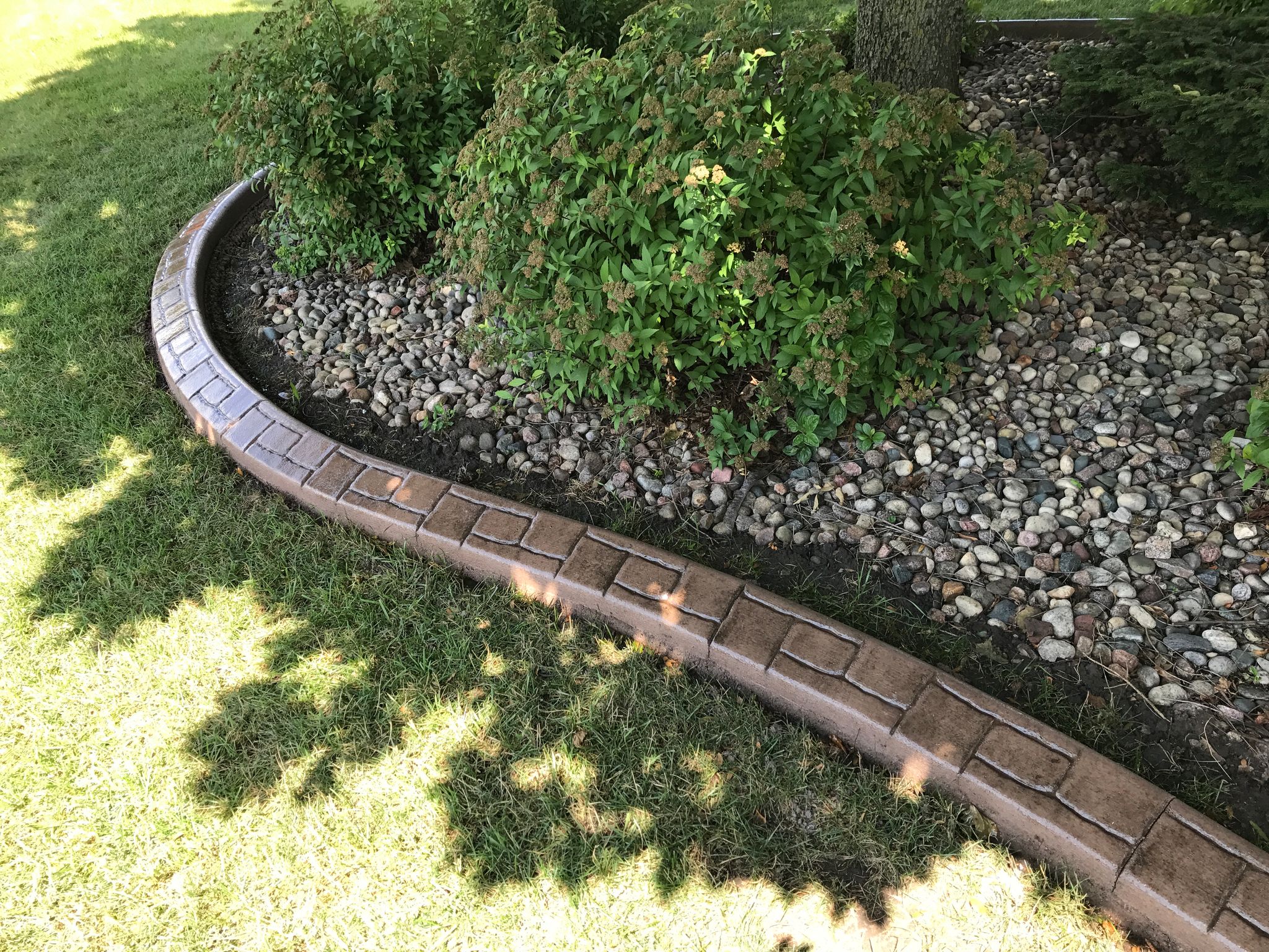 We can create a concrete landscaping border that looks like natural stones. These concrete borders look just like natural stone but are more stable and durable. Get all of the benefits of a concrete curb without sacrificing your love for the look of natural stone.